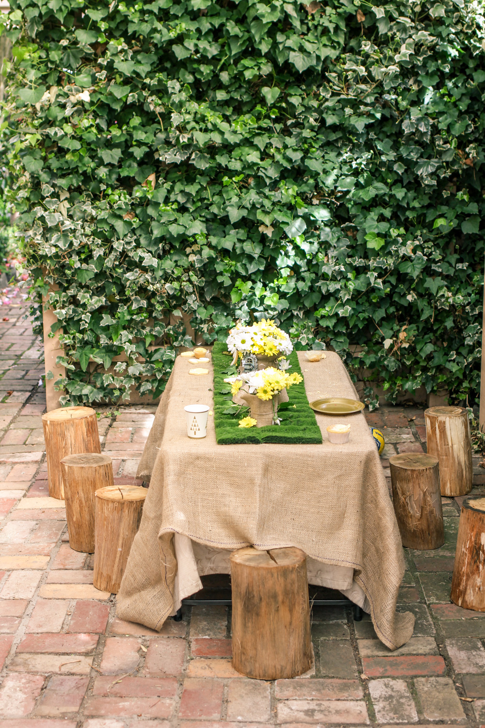 - Table runner: Faux moss from Spotlight. Petals pulled from the flowers and ivy cut from my own garden.